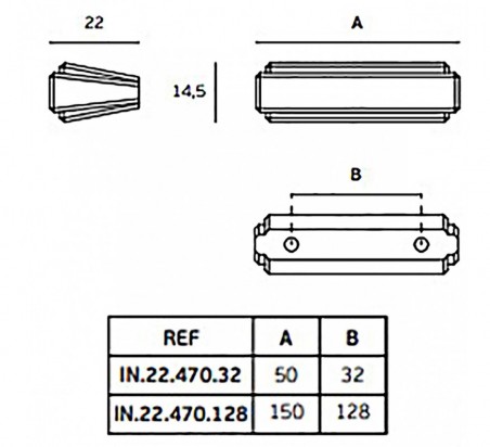 TIRADOR DE MUEBLE JNF IN.22.470 INOX SATIN / INOX PULIDO /TIT. BLACK / TIT. GOLD/ TIT. COPPER / TIT. CHOCOLATE : ACABADOS:INOX SATINADO, MEDIDAS C y L:32mm 50mm