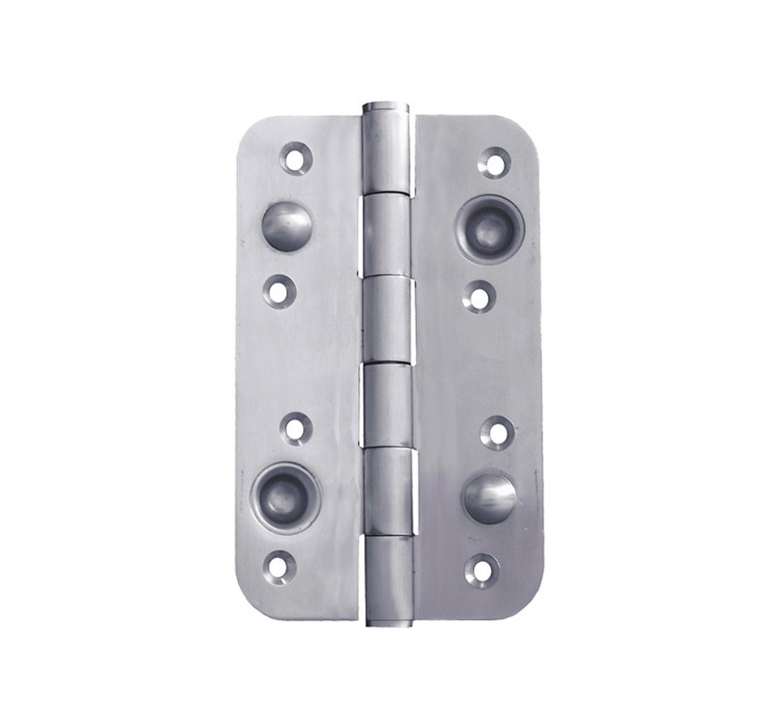 Características: Bisagra de seguridad con función antipalanca, diseñada con un canto redondo y radio de 12 mm, proporcionando alta resistencia y durabilidad. Perfecta para puertas de seguridad.
