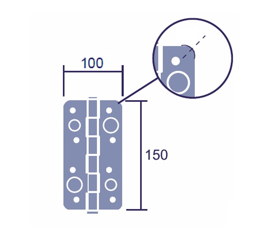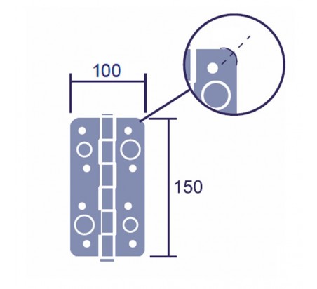 Bisagra de seguridad antipalanca 150x100x3 mm, radio 12 mm, canto redondo.