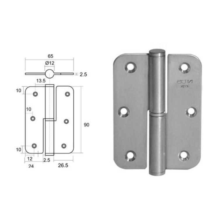 Pernio para puerta de paso pala redonda cerrada 90x65 mm