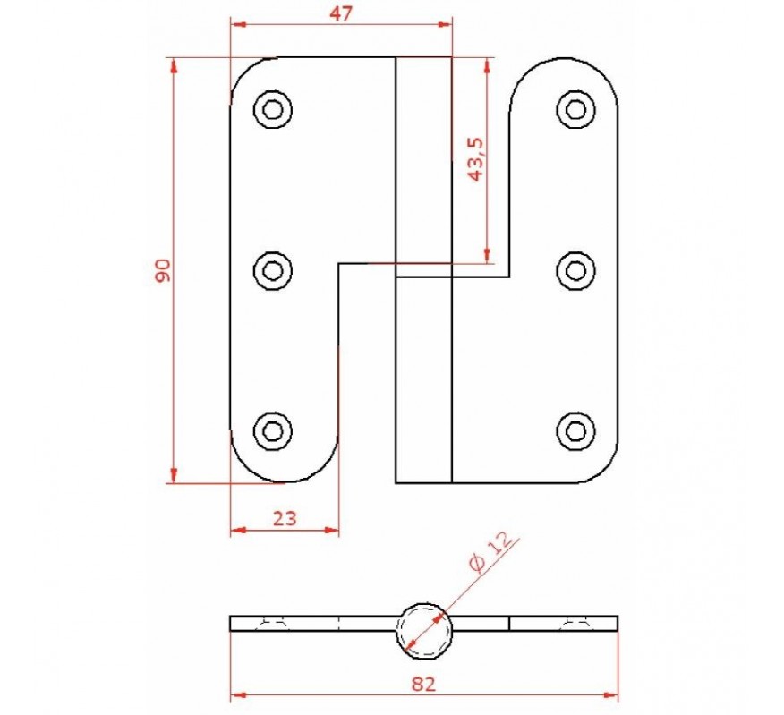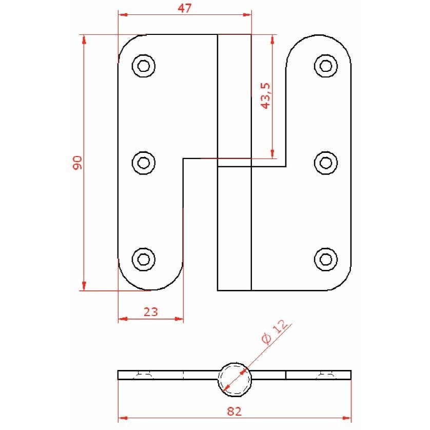 PERNIO 950/90 90X82MM CANTO REDONDO : ACABADOS:CROMADO, MANO:DERECHA