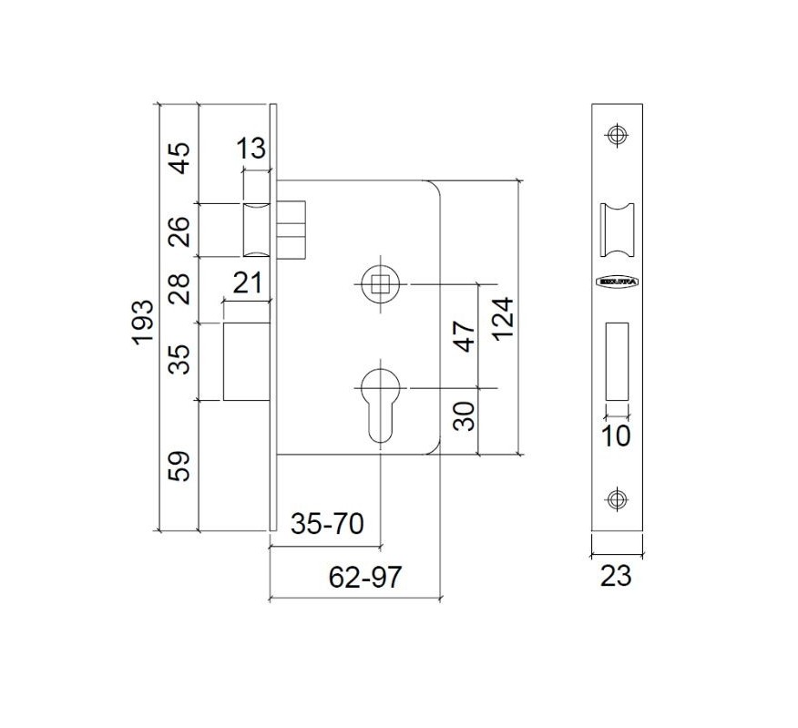 CERRADURA EZCURRA 3100 DORADO : CANTO:CANTO RECTO, AGUJA:70 mm