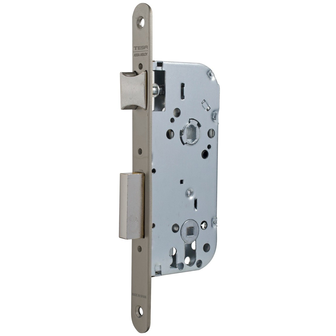 CERRADURA EMBUTIDA TESA 134 GOLPE/MULE 50MM C/RECTO LATON : ACABADOS:INOX MATE, CANTO:CANTO REDONDO