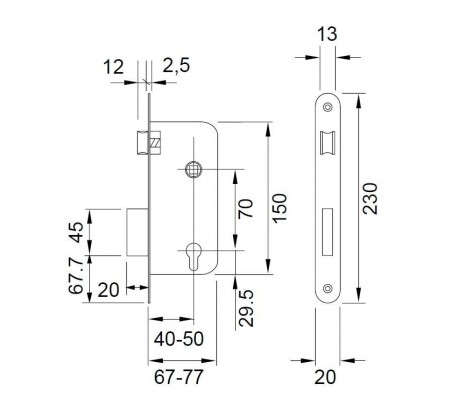 Cerraduras de embutir Tesa serie 4130 (130) para puertas de madera. Esta cerradura de embutir Tesa 4130 tiene frente estrecho de 20 mm adecuado para puertas con solapa, caja cerrada que impide la entrada de viruta,