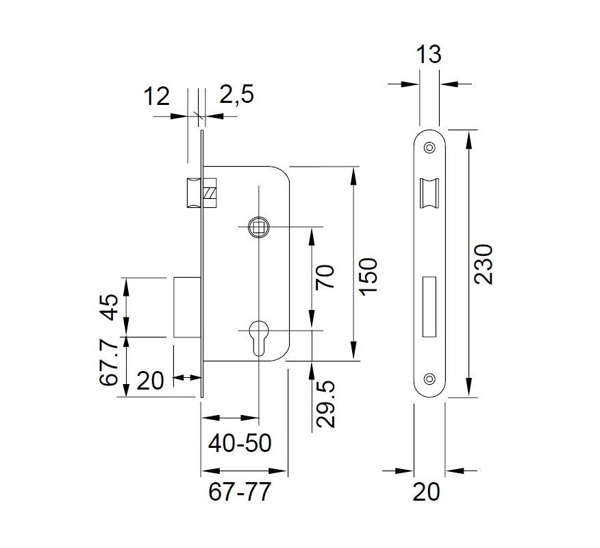 Cerradura de embutir Tesa serie 4130 (130) diseñada para puertas de madera. Presenta un frente estrecho de 20 mm, ideal para puertas con solapa. Su caja cerrada evita la entrada de virutas. La cerradura y el cerradero están unificados para toda la gama 130. No incluye cilindro.
