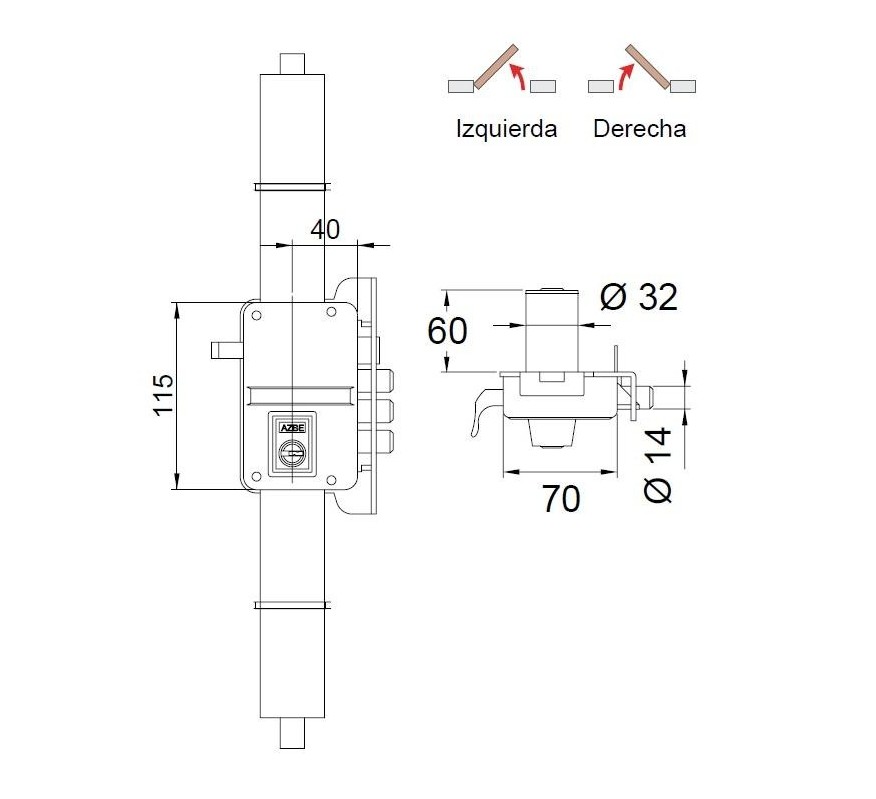 CERRADURA DE SOBREPONER SEGURIDAD AZBE 9 : ACABADOS:CROMADO, MANO:DERECHA