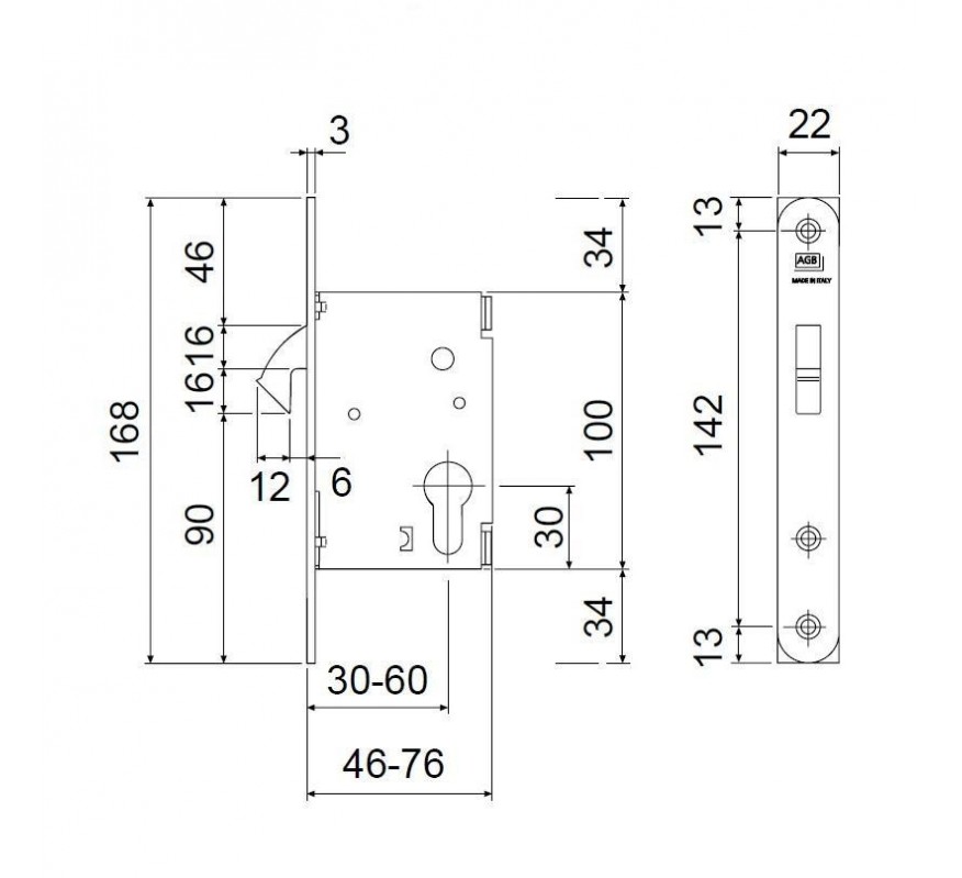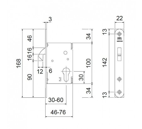 CERRADURA GANCHO CORREDERA AGB S/B : ACABADOS:BRICOMATADO, AGUJA:60 mm