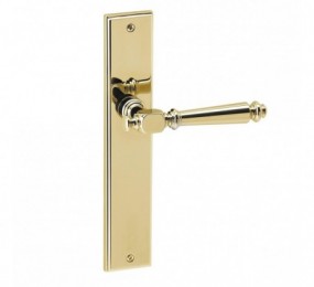 Juego de manillas para puertas fabricadas en latón con una línea clásico atemporal.